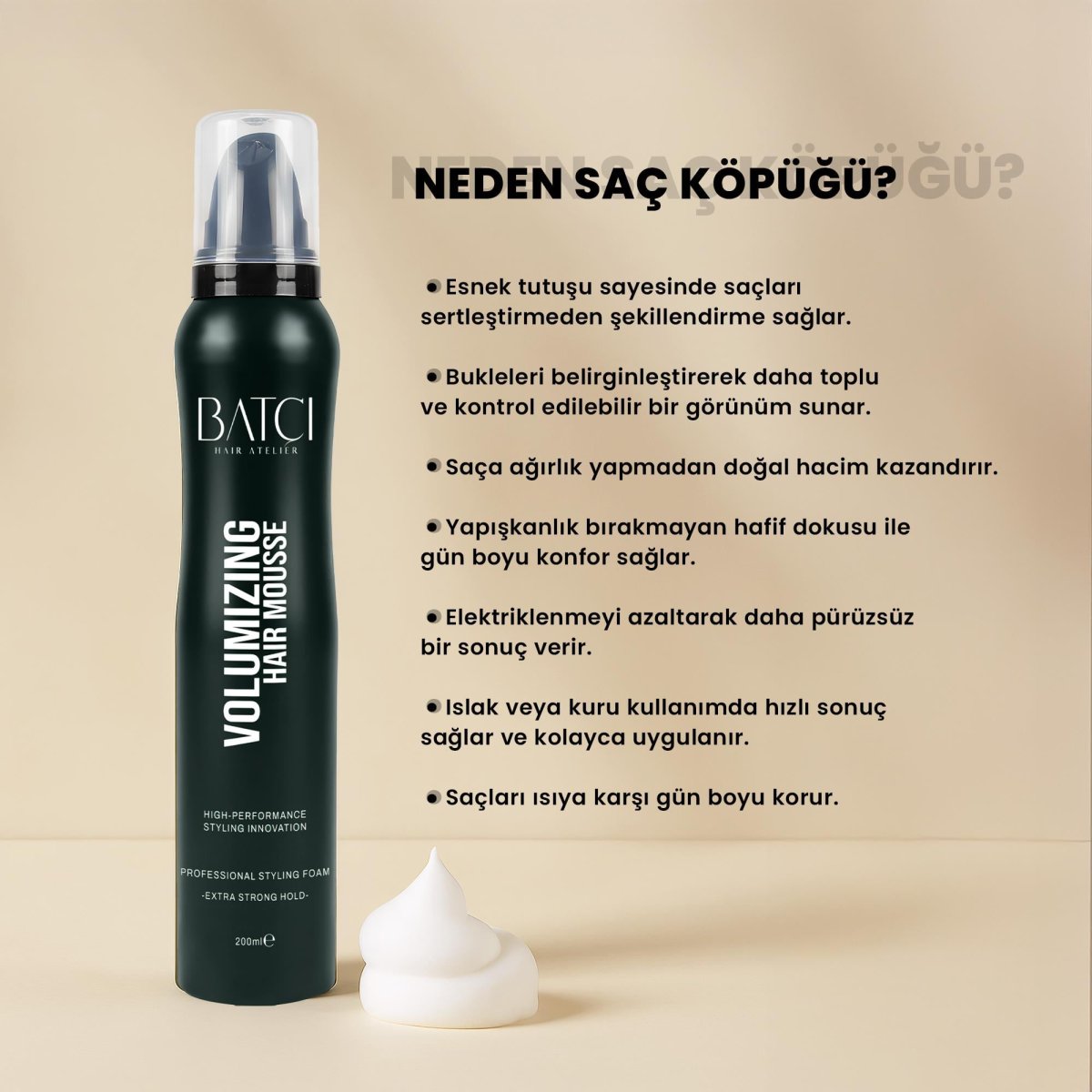 Batçı Esnek Tutuşlu Hacim ve Bukle Belirginleştirici Saç Köpüğü 200 ml